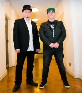 Mick watching headliner's 'Snakecharmer' with Focus drummer Pierre Van Der Linden at the Picturedrone, Holmfirth, Yorkshire.